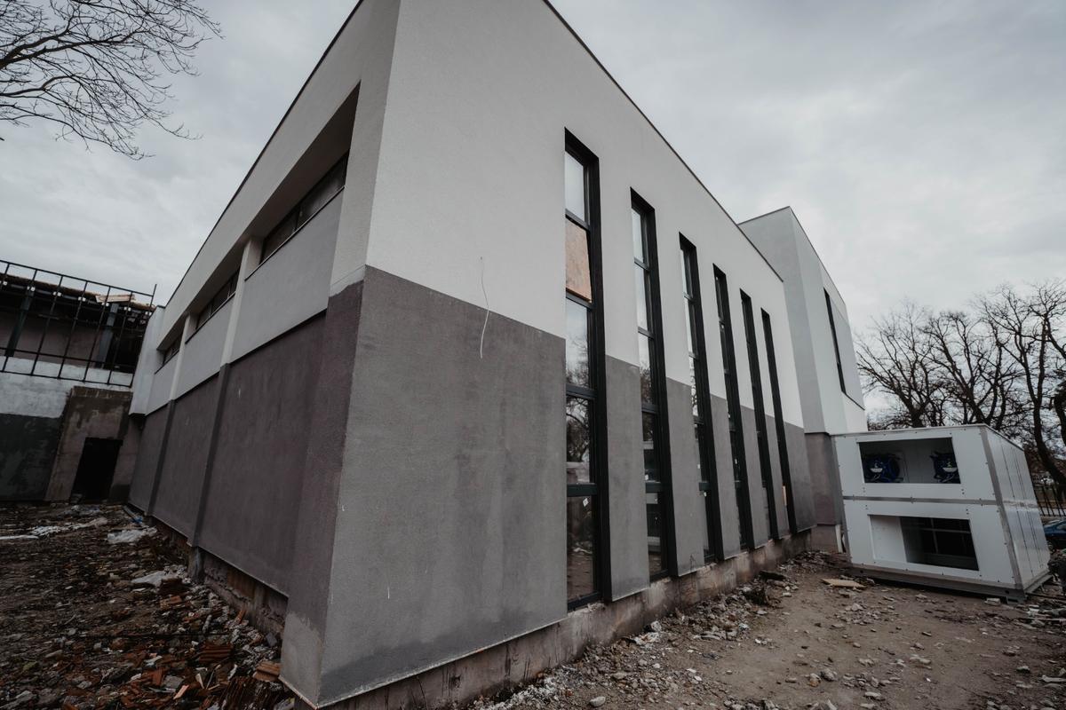 Constructorul a finalizat finisajele exterioare în proporție de 90%, a terminat lucrările de montare a hidranților și este aproape gata cu instalațiile interioare. Urmează să efectueze probele pentru instalații, să monteze tavanul fals și pardoseala și să instaleze centrala de tratare a aerului pe acoperișul clădirii reabilitate.