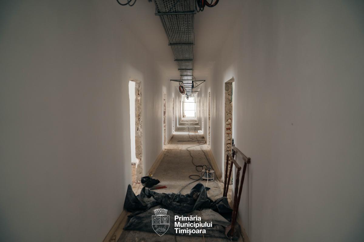 Municipalitatea a demarat lucrările în această vară, iar intervențiile se concentrează în prima etapă asupra clădirii internatului. Constructorul a desfăcut straturile de tencuială și pardoseală vechi, a îndepărtat instalațiile nefuncționale și echipamentele vechi, iar acum intervine pentru modernizarea clădirii.