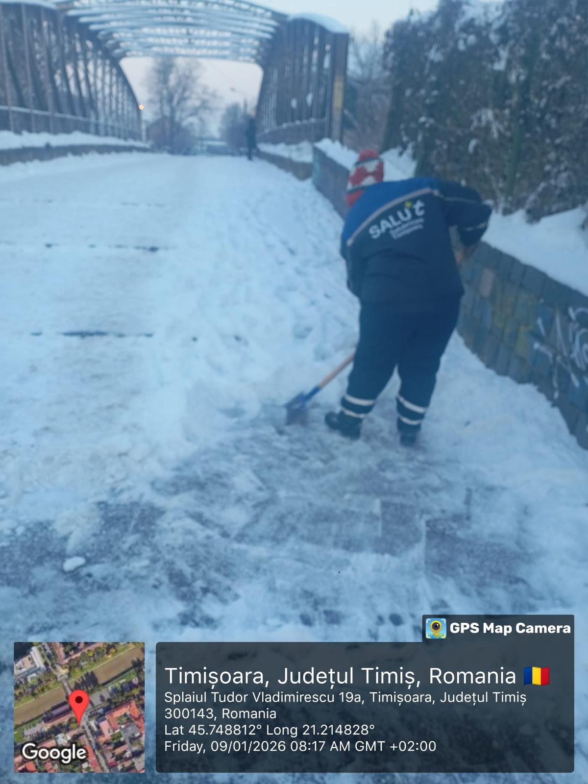 Pe parcursul nopții și al dimineții, echipele Salubrizare Timișoara (SaluT) au acționat în continuare cu prioritate pe arterele principale, traseele de transport public, podurile și zonele cu risc crescut. Încă de ieri după masă, echipele de deszăpezire au început să intervină și pe traseele secundare și trotuare, azi continuând efortul în aceste zone.