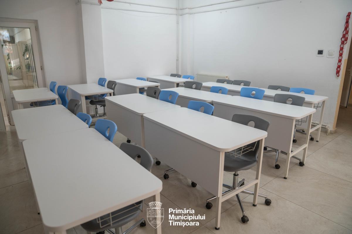 Investițiile Primăriei Municipiului Timișoara în modernizarea infrastructurii educaționale continuă cu dotarea laboratoarelor și cabinetelor școlare cu mobilier, precum și cu echipamente IT pentru 1.300 de săli de clasă.