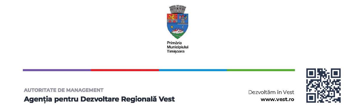„Proiectul este cofinanțat de Uniunea Europeană, prin ADR Vest în calitate de Autoritate de Management pentru Programul Regional Vest 2021-2027. Pentru informații detaliate despre program, accesați www.vest.ro”.